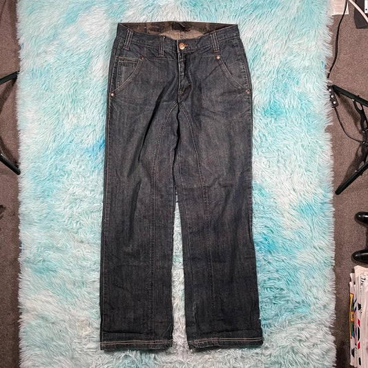 Vintage 00s Blue Rivet de Cru Baggy Jeans Straight Leg - 36W 32L