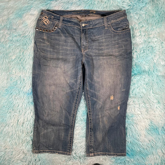 Vintage 00s Blue Capri Jean Shorts 3/4 - Size 18