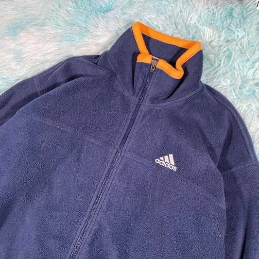 Vintage 90s Navy Adidas Fleece Full Zip - Small