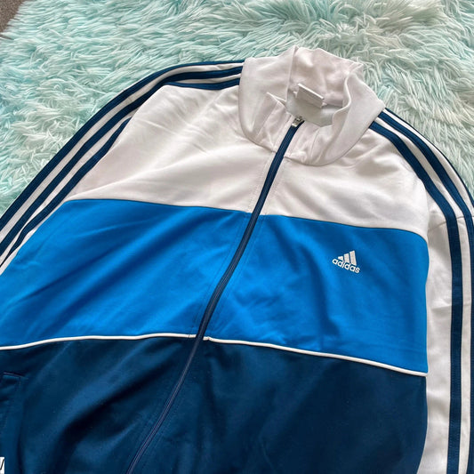 Vintage Y2K White & Blue Adidas Track Jacket - XXL