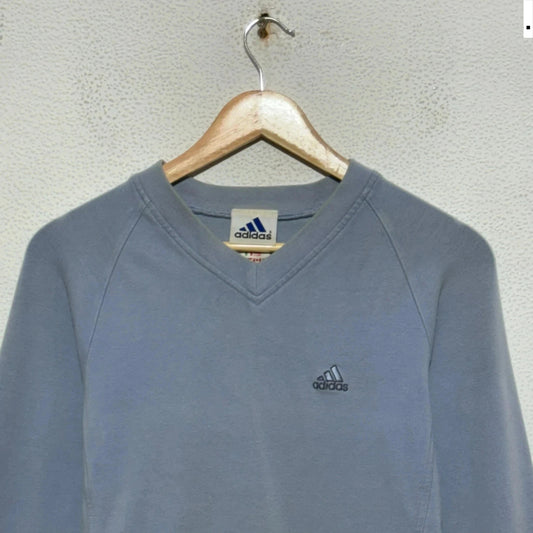 Vintage 00s Baby Blue Adidas Sweatshirt V Neck - Size 8