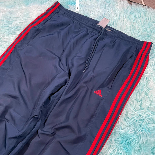 Vintage 00s Navy & Red Adidas Tracksuit Bottoms - Medium