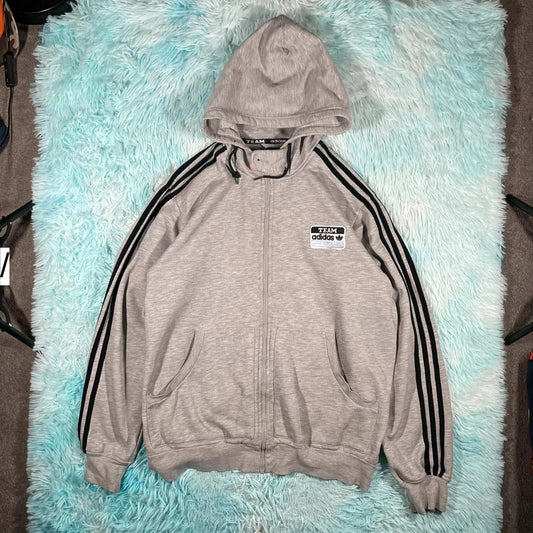 Vintage 00s Grey Adidas Hoodie Full Zip - XL