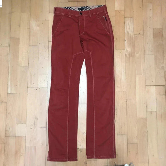 Vintage 00s Red Burberry Trousers Contrast Stitching - Size 18 EU 46