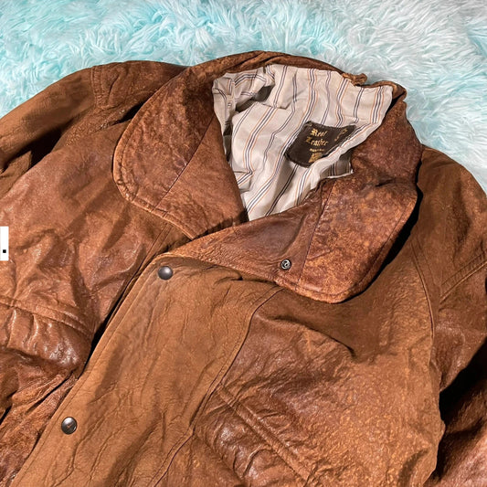 Vintage 90s Heavyweight Leather Biker Jacket - XXL
