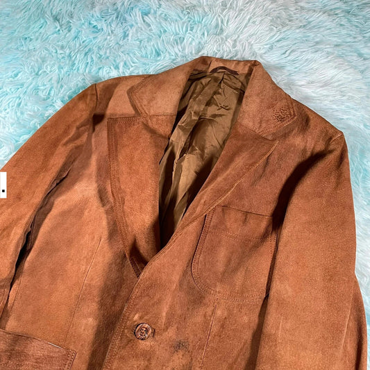 Vintage 90s Suede Leather Blazer Jacket - Small