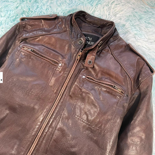 Brown Leather Bomber Jacket - Large