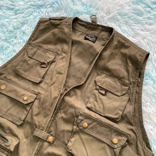Vintage Khaki Utility Fishing Vest Jacket - 3XL