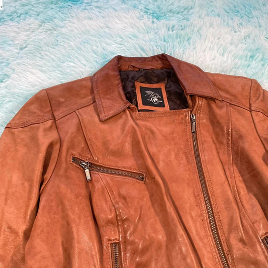 Vintage Brown Snapshot Leather Jacket - XL