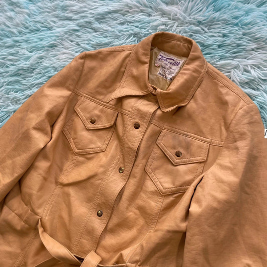 Vintage 70s Tan Brown Leather Jacket - Size 16