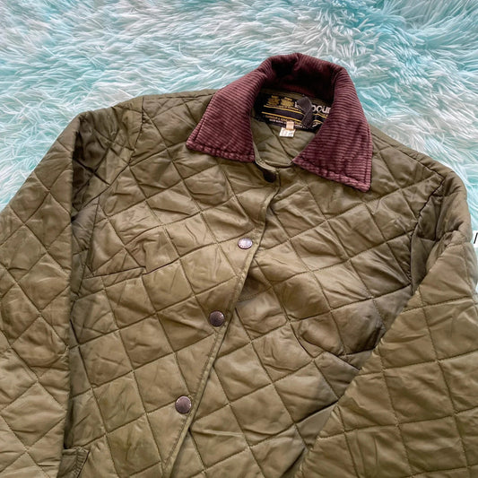 Vintage 80s Khaki Barbour Quilted Jacket - Large