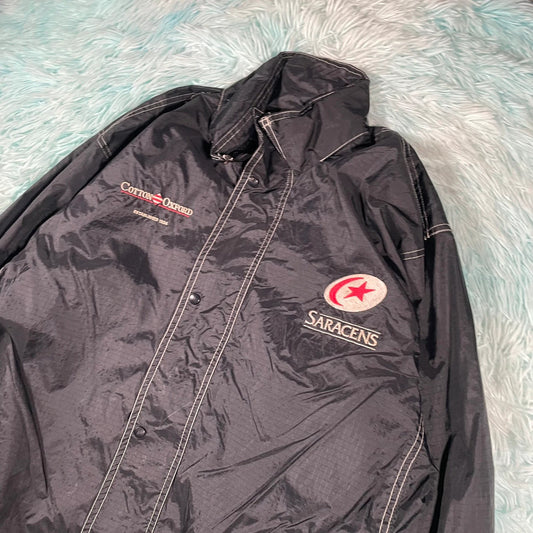 Vintage 90s Black Saracens Windbreaker Jacket Cotton Oxford - XL