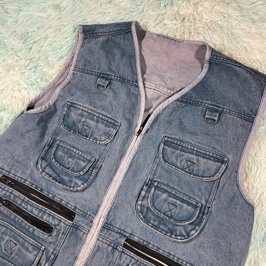 Denim Fishing Utility Vest Jacket - XXL
