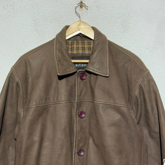 Vintage 90s Brown Heavyweight Leather Jacket - XL