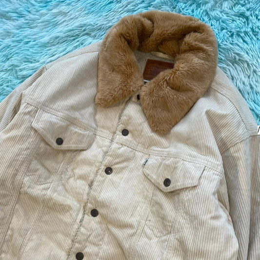 Cream Levi’s Corduroy Sherpa Trucker Jacket - Large