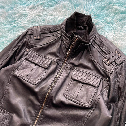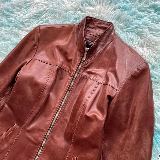 Vintage 00s Brown Leather jacket Fitted - Small