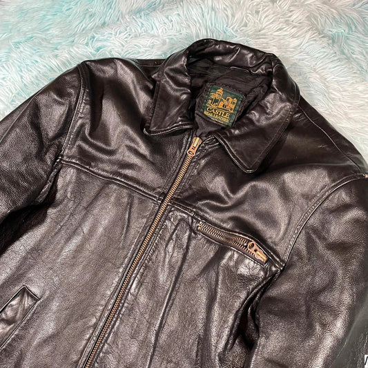 Vintage 90s Black Boxy Leather Jacket - Medium