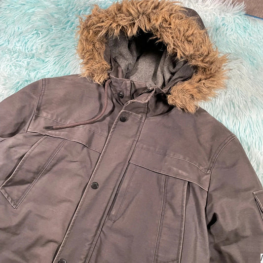Grey Quiksilver Coat Jacket Fur Hood - medium