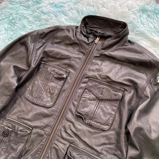 Vintage Dark Brown Leather Jacket Fitted - Medium