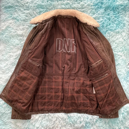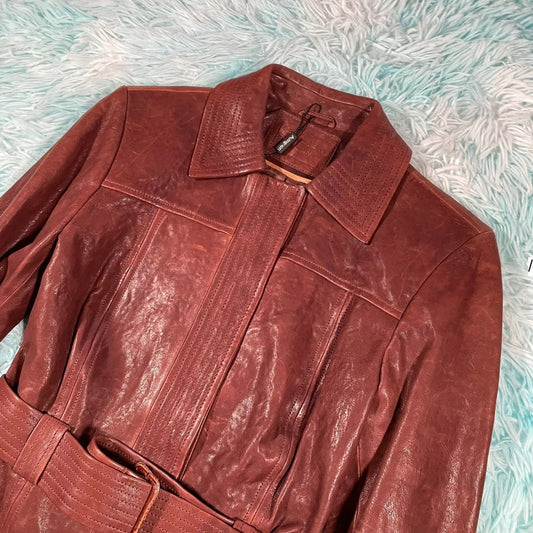 Vintage Y2K Red M&S Leather Jacket Belted - UK10