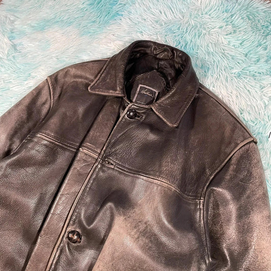 Vintage 90s Black Leather Jacket Trucker - Medium