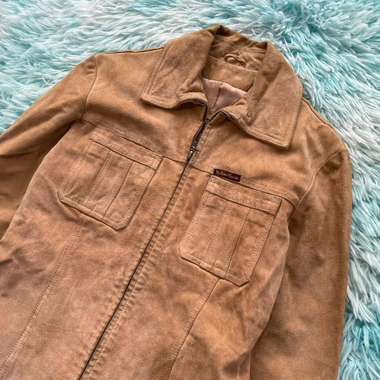 Vintage Beige Marlboro Classics Suede Leather Jacket - Large
