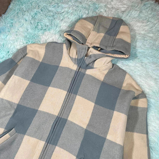 Vintage 90s Blue & White Benetton Coat Wool Checked - XL