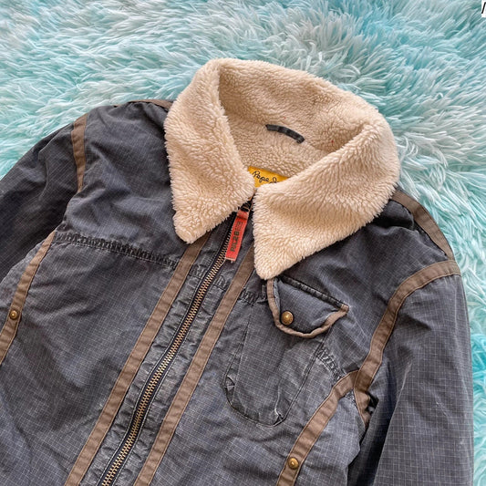 Vintage Y2K Grey Pepe Jeans Sherpa Fleece Jacket - Medium