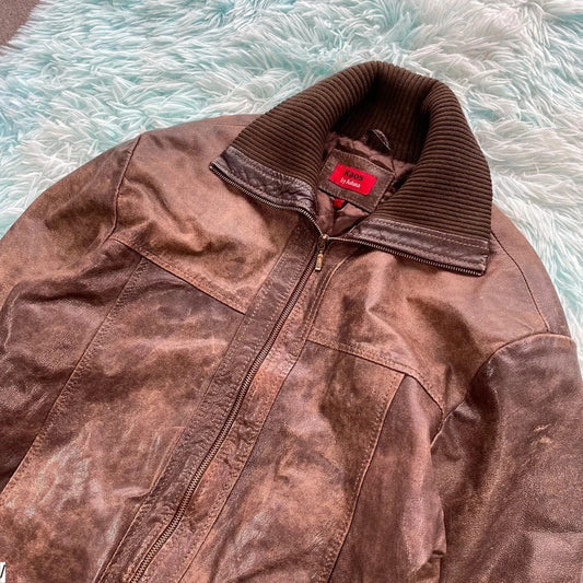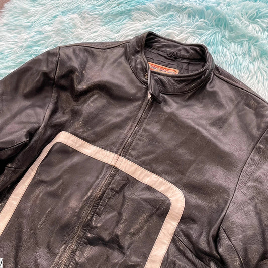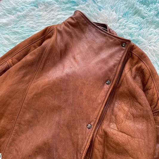 Vintage 90s Italian Leather Jacket Assymetric - Medium