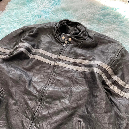 Vintage 90s Heavyweight Leather Biker Jacket - XXL