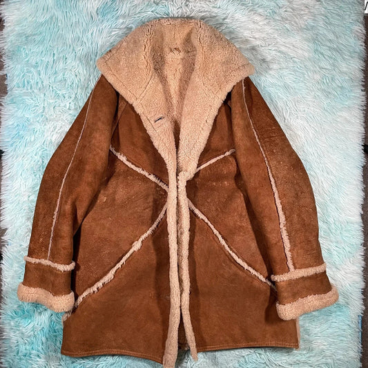 Vintage 90s Brown Sheepskin Leather Jacket Delboy - Size 16