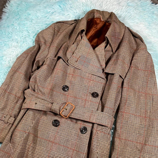 Vintage 90s Austin Reed Chequered Wool Trench Coat - XL