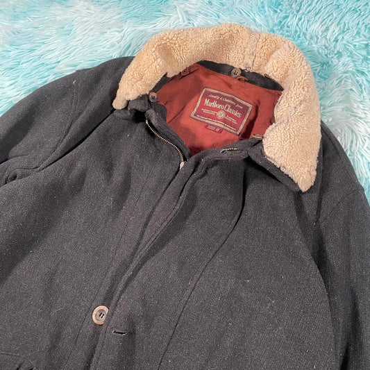Vintage Black Marlboro Classic Wool Coat - XL