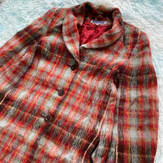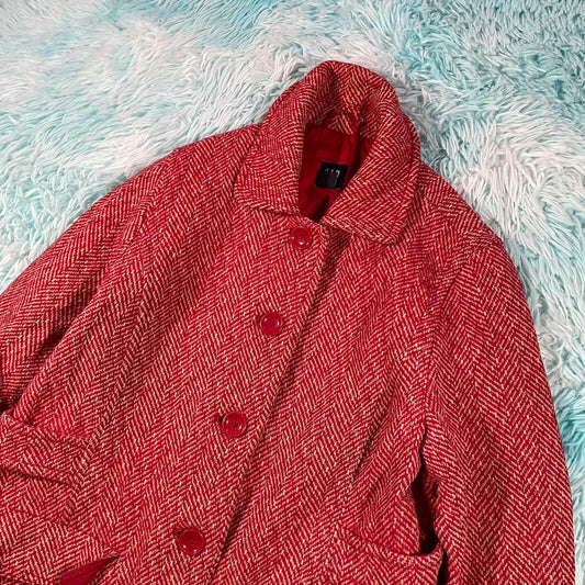 Vintage 90s Red Mohair Wool Blend Long Coat - Size 10