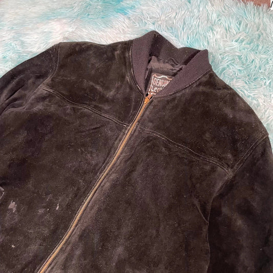 Vintage Suede Leather Bomber Jacket - XL