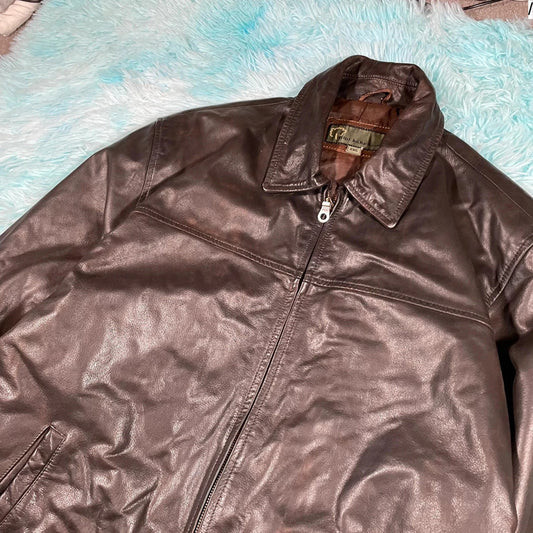 Vintage 90s Brown DNR Leather Jacket - XL