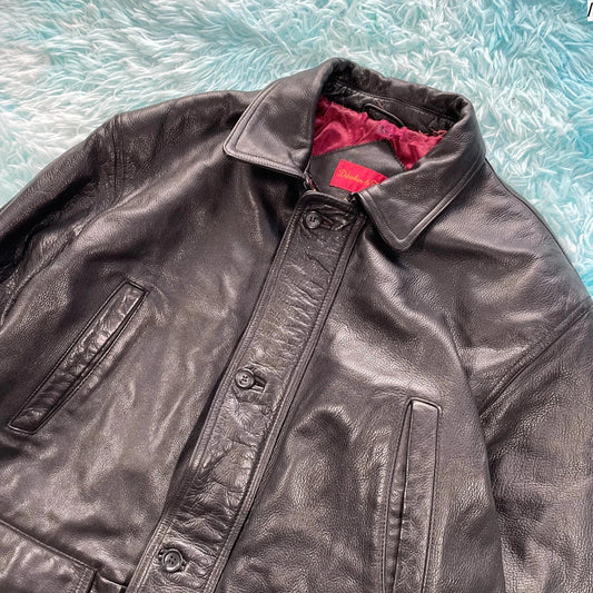 Vintage 90s Black Leather Jacket - Large