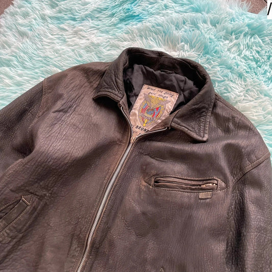 Vintage 90s Dark Brown Heavy Leather Jacket Bronx - Medium