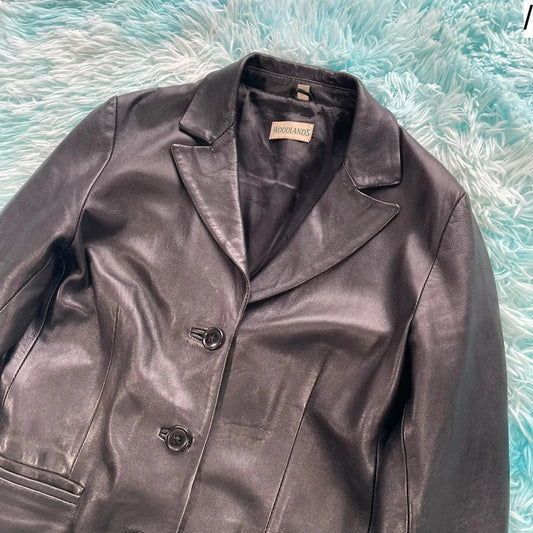 Vintage Y2K Black Leather jacket - Size 12