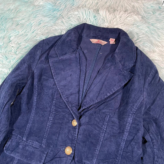 Vintage 00s Blue Corduroy Blazer Jacket - Size 12