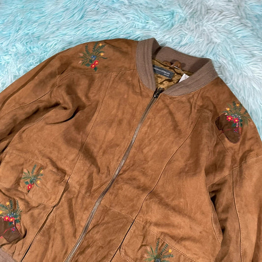 Vintage Brown Austrian Suede Leather Bomber Jacket - Small