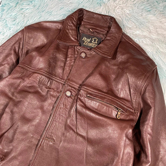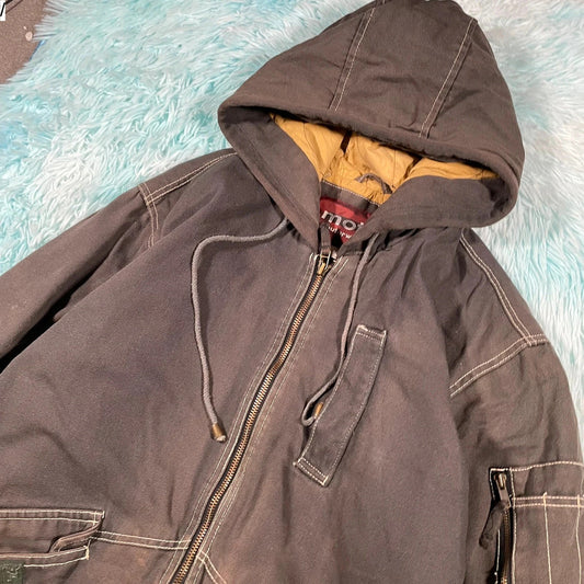 Vintage 00s Brown Heavyweight Moto Canvas Jacket - Medium