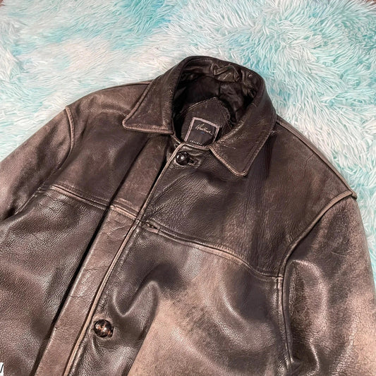 Vintage 90s Heavy Leather Jacket - Large