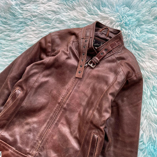 Vintage Y2K Brown Leather Jacket - Medium