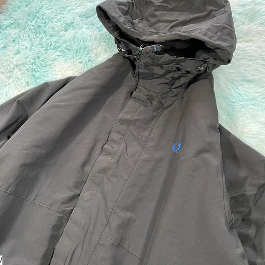 Black Fred Perry Jacket Coat Fleece Lined - Large