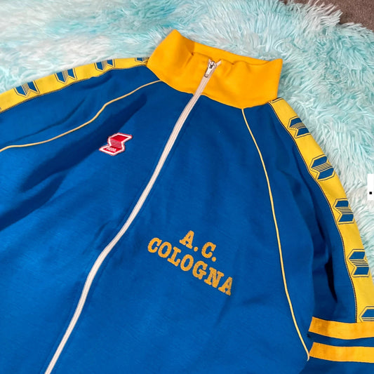 Vintage 80s Blue & Yellow AC Cologna Veneta Track Jacket - XXL