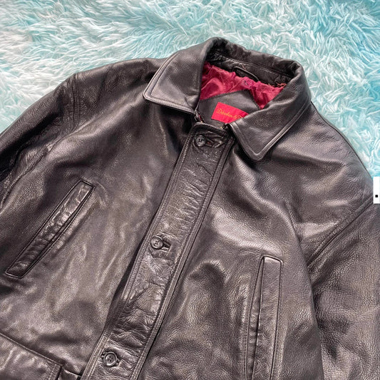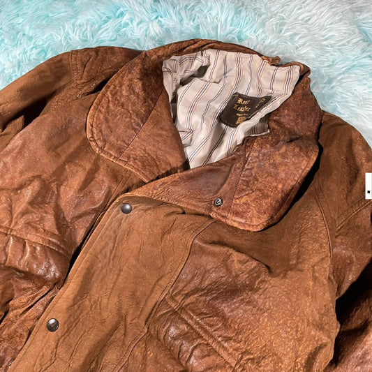 Vintage 90s Brown Leather Bomber Jacket - Medium