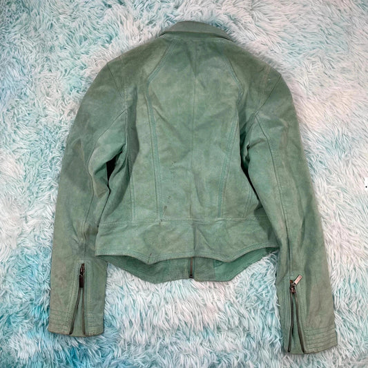 Vintage Y2K Mint Green Suede Leather Jacket - Womens Small