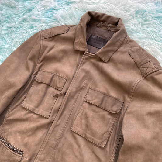 Tan Brown AllSaints Suede Leather Jacket - Medium