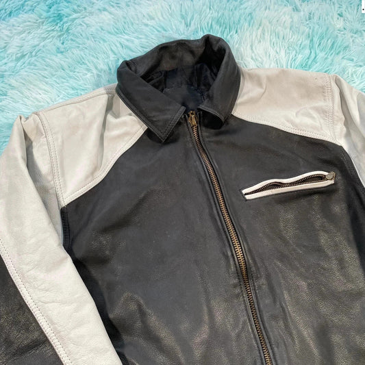 Vintage 90s Black & White Leather Jacket - XL 44”